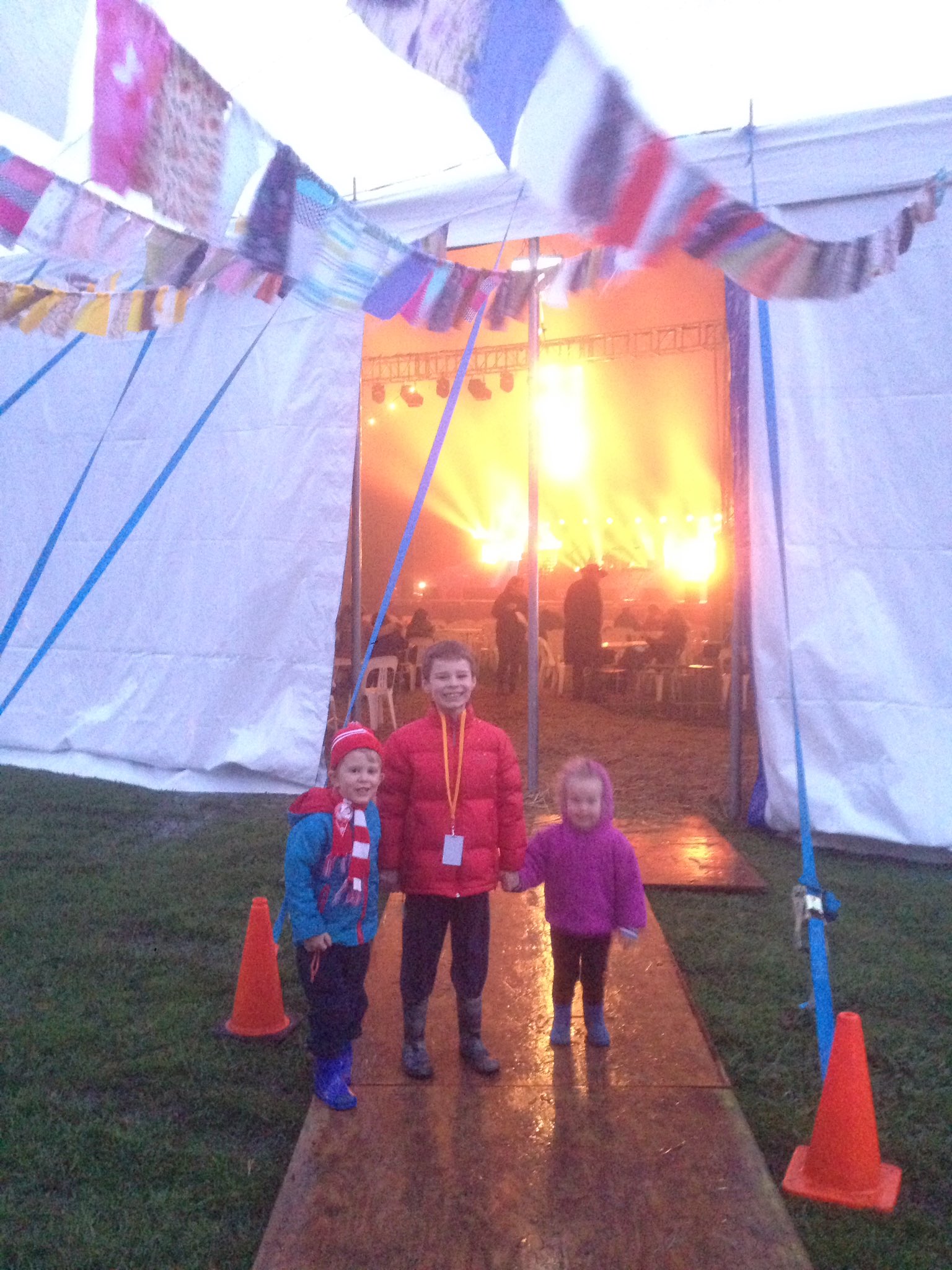And we headed to the glasshouse. What a fun band. Daniel and Eliza had a great time jumping and dancing with each other and Oscar and enjoying the music. The only problem was the mud that was still around as we didn't want the kids getting dirty just before bed. So that made it a little bit stressful, but the music was great. We then headed back to our room and got the kids ready for bed. They went so sleep pretty quickly tonight which was good, however, Alexander had a very unsettled nights sleep. Fortunately he didn't wake up the others.